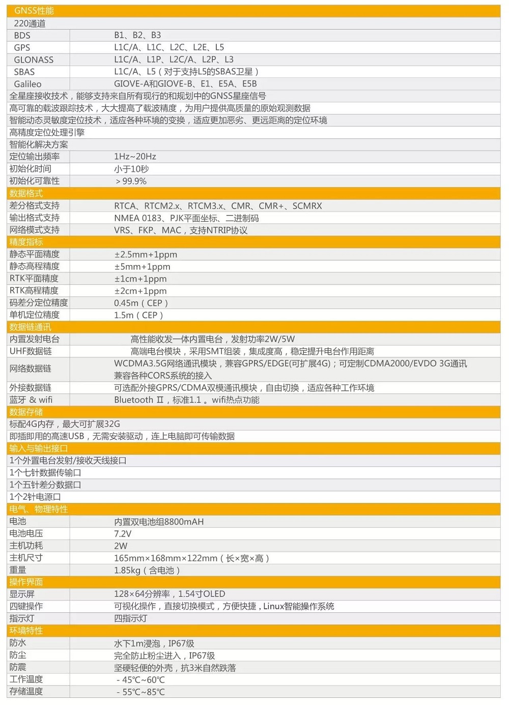 主要性能參數(shù)定位輸出頻率1Hz~20Hz初初始化時(shí)間小于10秒初始化可靠性>99.9%